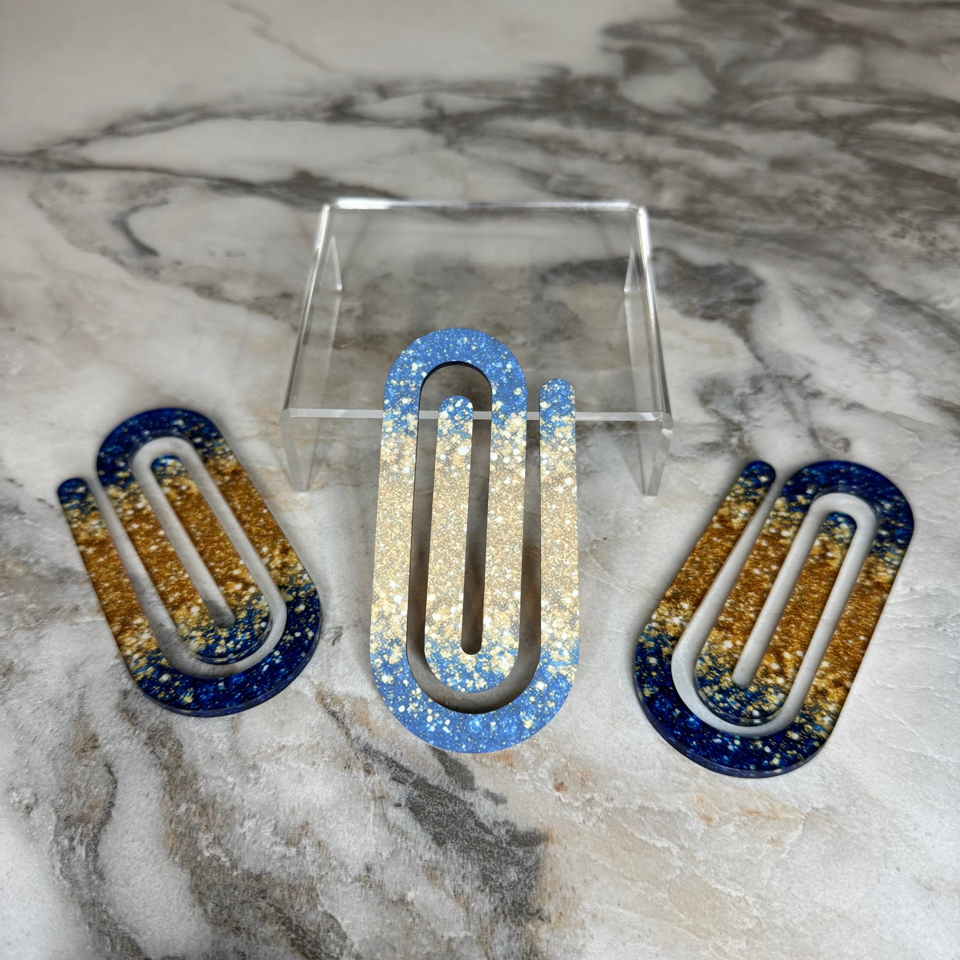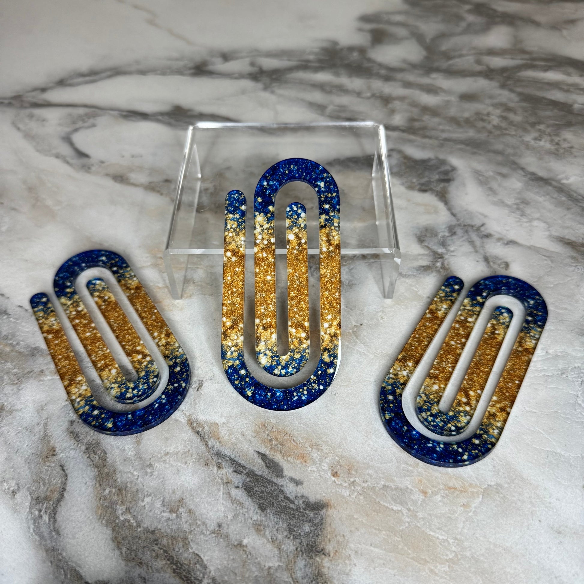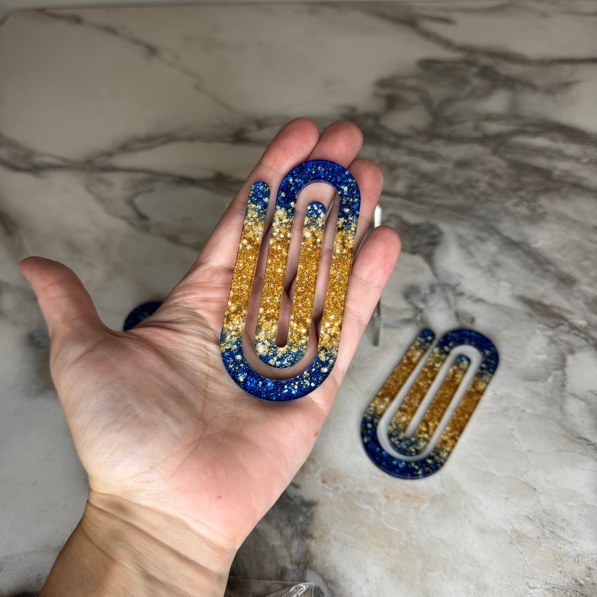 Jumbo Paperclip - Blue Gold Glitter