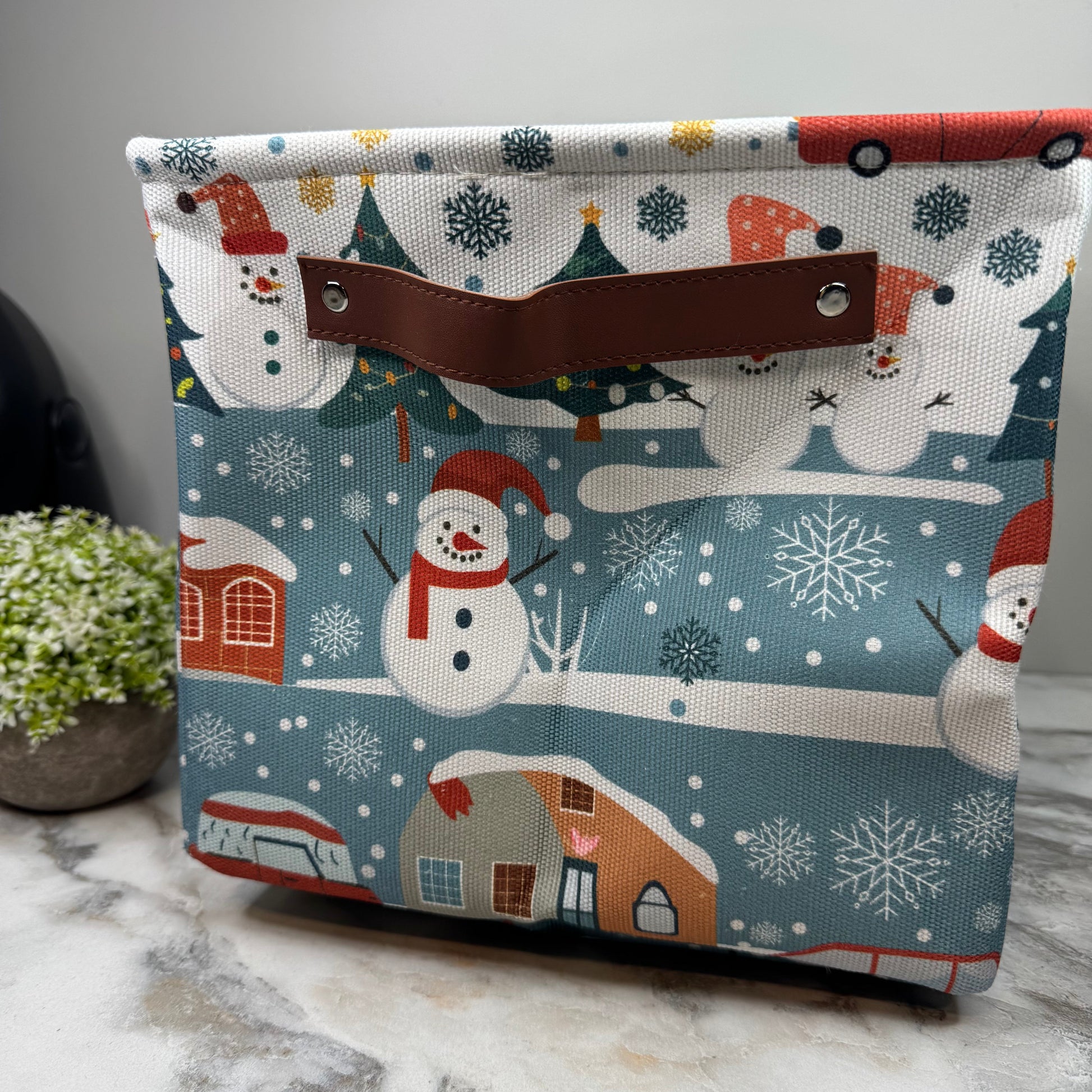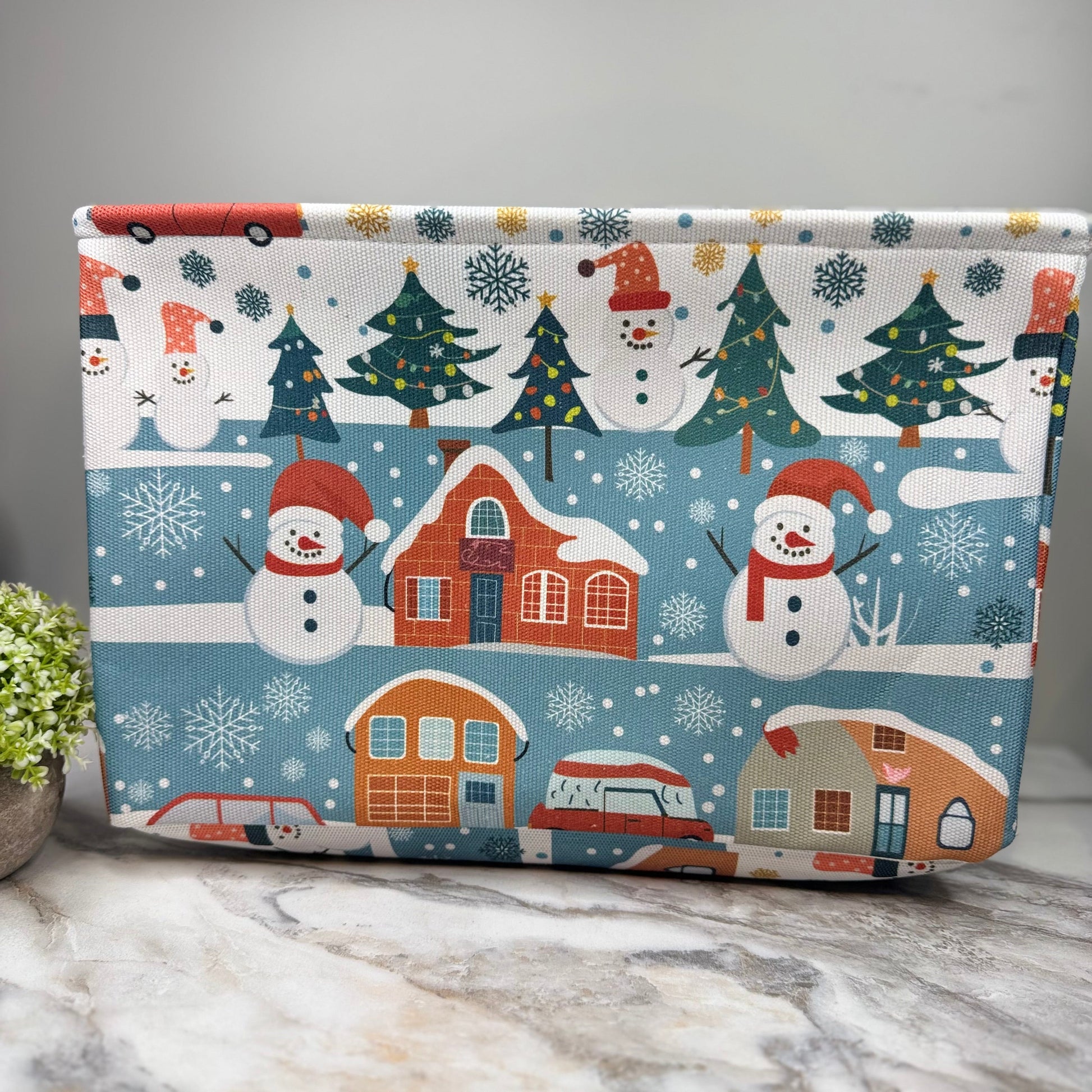Pop Up Canvas Basket - Christmas Snowman Town