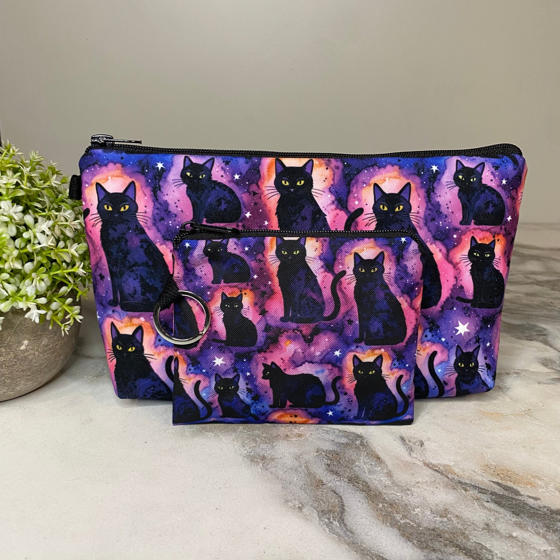 Pouch & Mini Pouch Bundled Set - Black Cat Galaxy