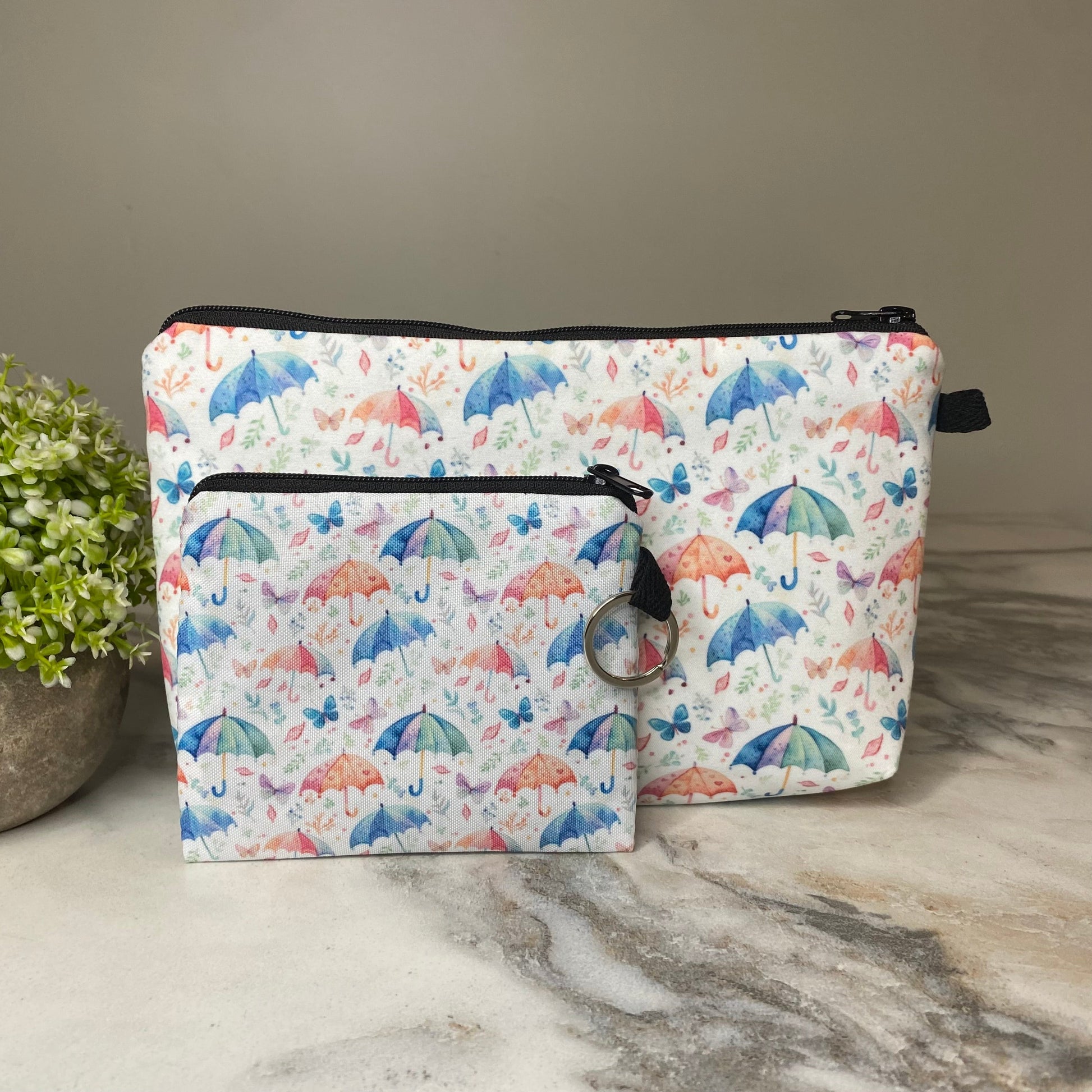 Pouch & Mini Pouch Bundled Set - Umbrellas & Butterflies
