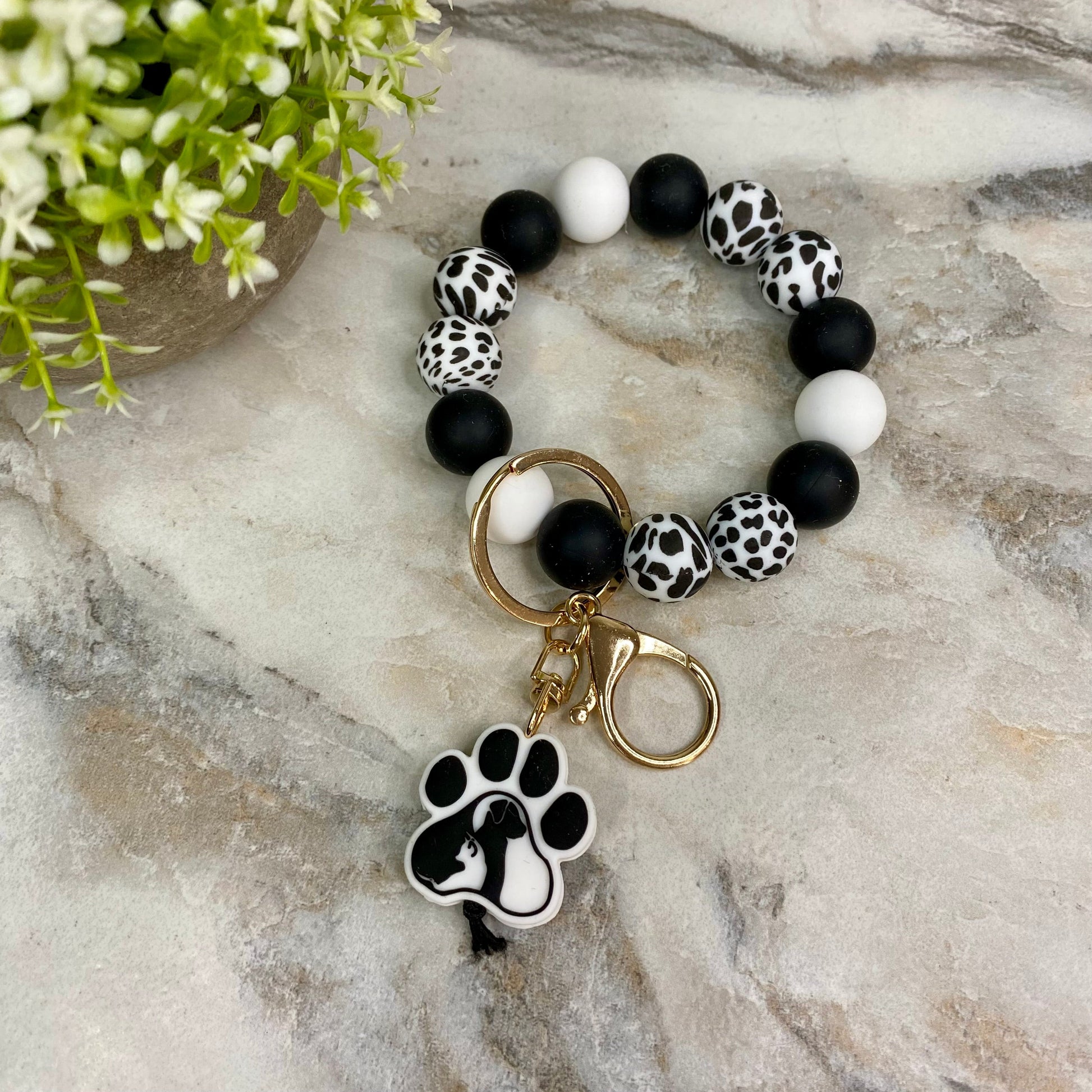 Silicone Bracelet Keychain - Black & White Dog Paw