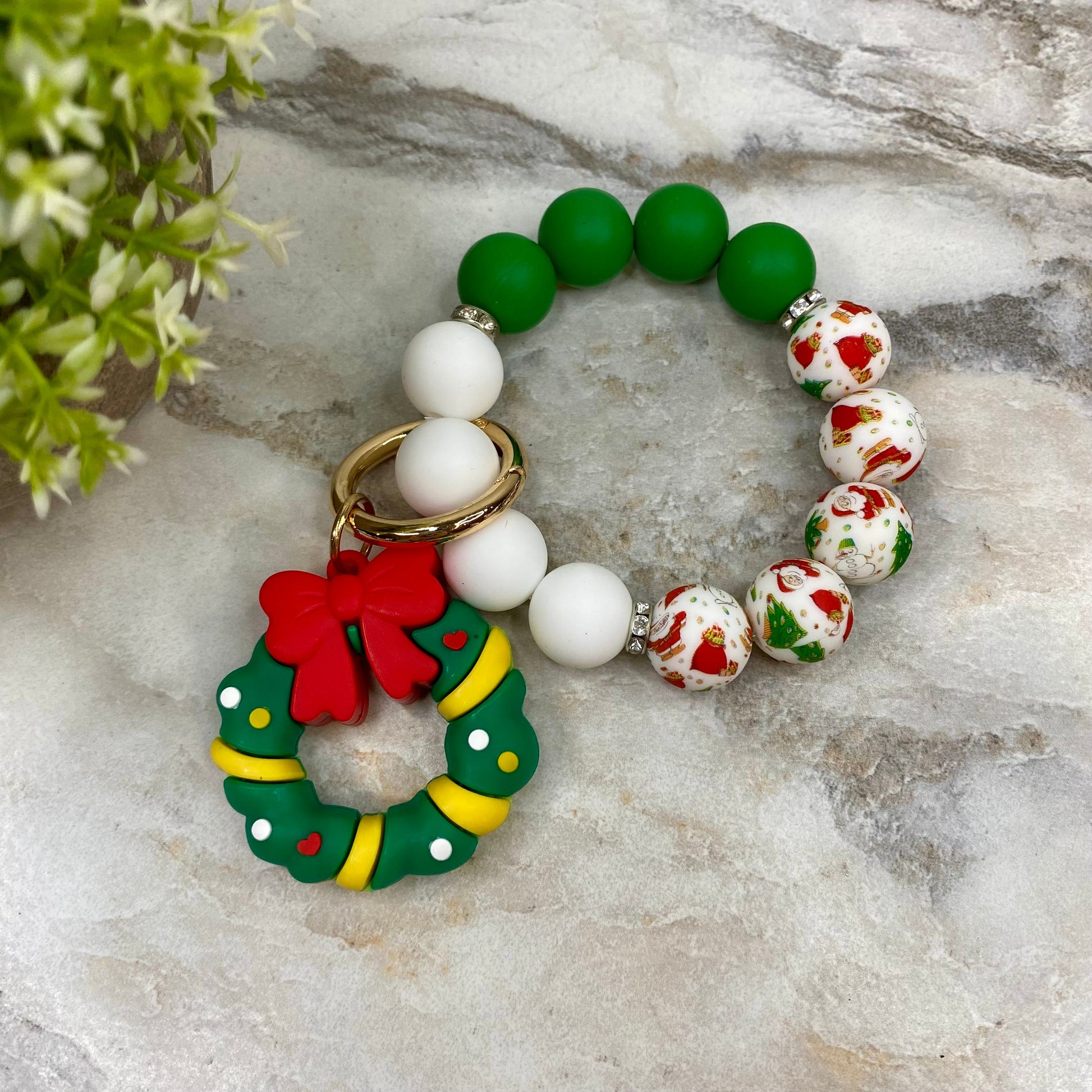 Silicone Bracelet Keychain - Christmas Winter - Wreath