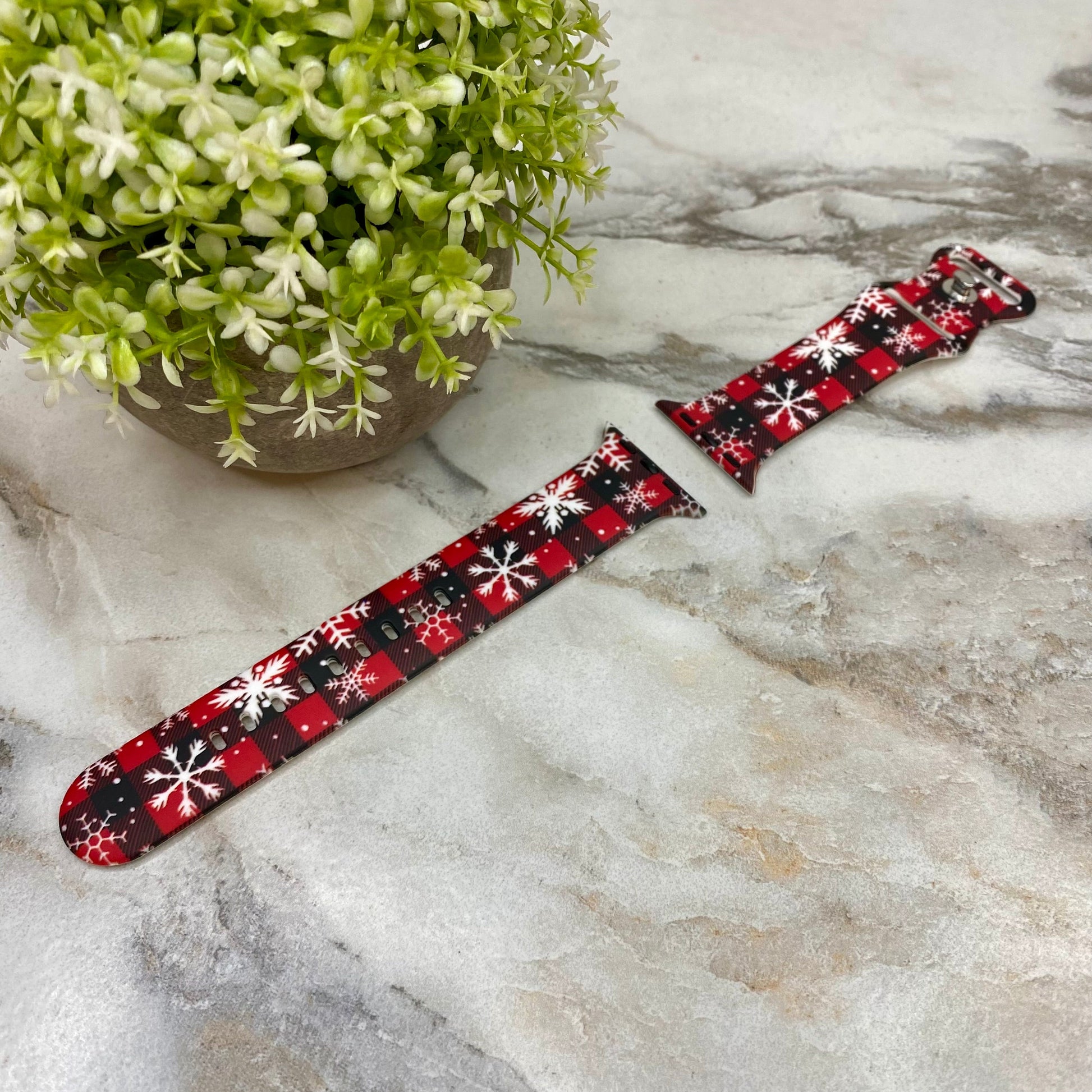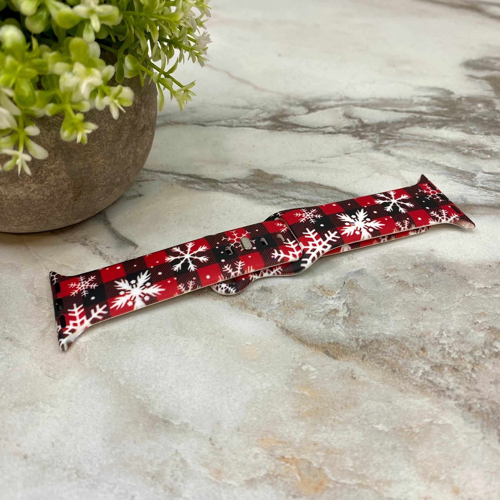 Watch Band - Silicone Christmas - Red Black Plaid Snowflake