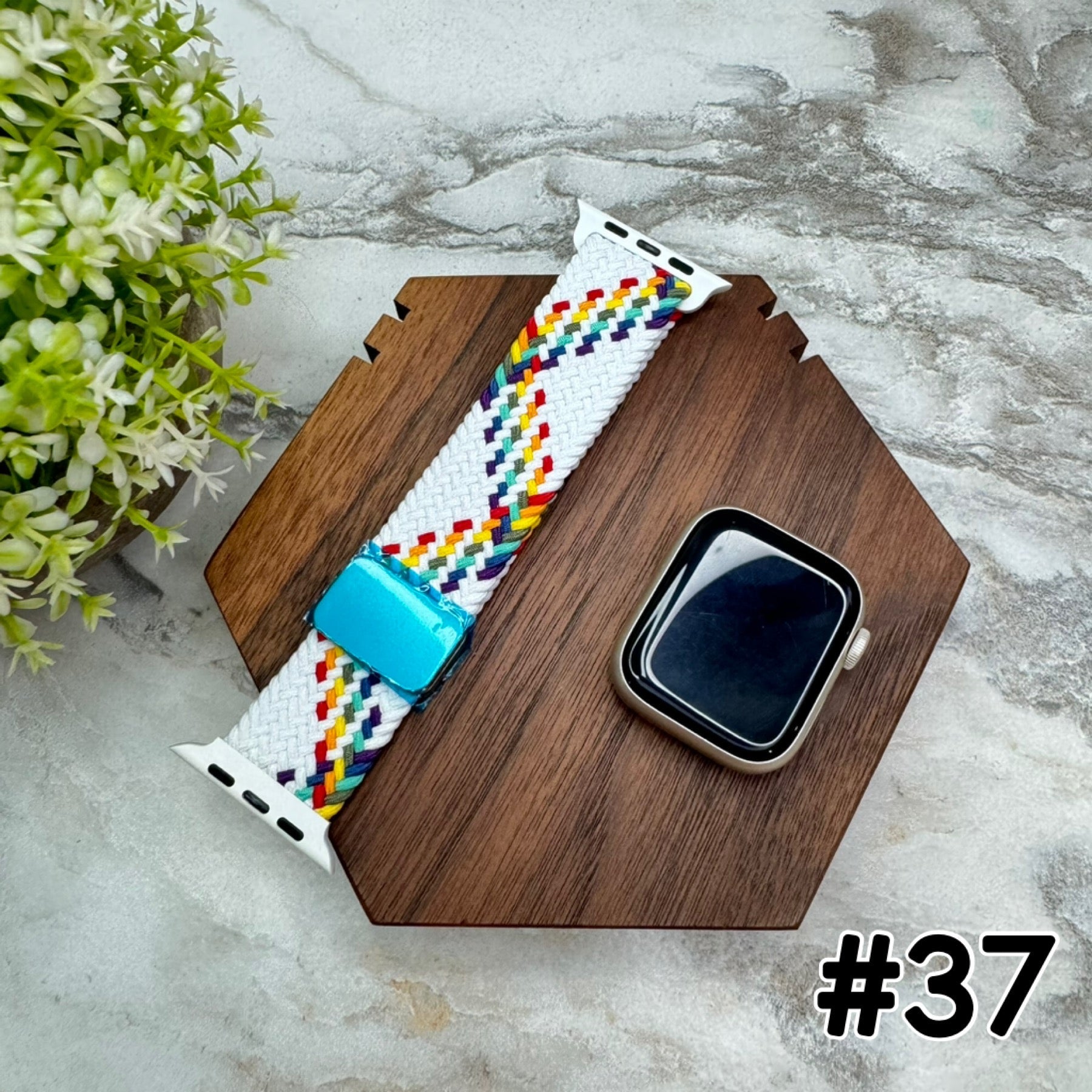 Watch bands for apple watches. Comes in sizes 38/40/41mm. Please note: the blue on the hardware is just a scratch resistant sticker.